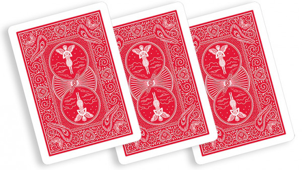 Das Bicycle 809 Mandolin Deck wurde exakt auf die Bedürfnissen von Zauberkünstlern abgestimmt. Zwar ähnelt es optisch einem normalen Bicycle 808 Kartenspiel, aber es gibt feine Unterschiede, die das Zaubern wesentlich erleichtern. Die Karten sind im Traditional Cut Verfahren geschnitten und nicht gestanzt, was den Karten eine viel bessere Laufeigenschaft verleiht. Dadurch gelingen viele Kartentechniken, wie beispielsweise ein Faro-Shuffle, deutlich leichter. Auf der Rückseite des Bicycle 809 Mandolin Decks sind mehrere Schmetterlinge, Federn und Mandolinen abgebildet. Eben dieses Rückseitendesign ist auch bei vielen Gimmick-Karten gebräuchlich. Zudem enthält jedes Bicycle 809 Mandolin Deck zwei idente Joker, eine Doppelrückseitenkarte und eine Karte mit einer blanken Vorderseite. Dieses Pokerdeck für den Zauberbereich ist in Rot und in Blau erhältlich.