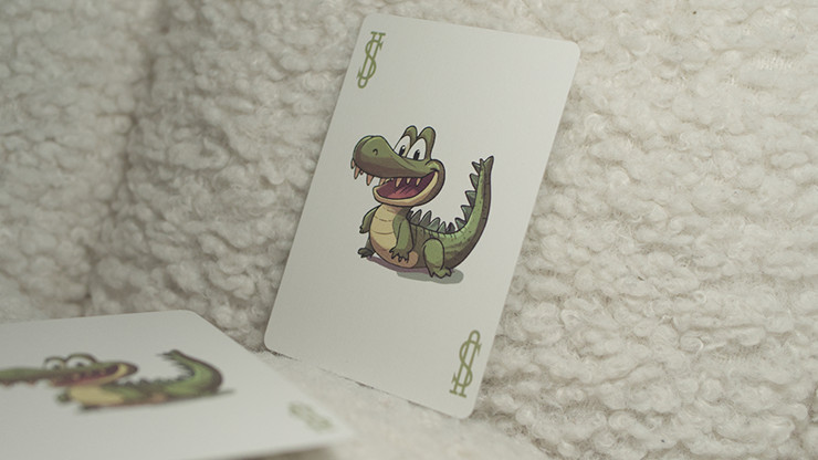 Gino dem Krokodil , dem ersten Maskottchen einer neuen Generation von Sammelkartenspielen. Dieses Deck wurde für alle entworfen, die vom ersten Blick an fasziniert sein wollen. Es bricht mit der Eintönigkeit herkömmlicher Bicycle-Karten und besticht durch eine einzigartige visuelle Identität. Die Verbindung der eleganten Schlichtheit der Bicycle-Karten mit Ginos verschmitztem Blick ergibt ein ebenso robustes wie geheimnisvolles Sammlerstück.