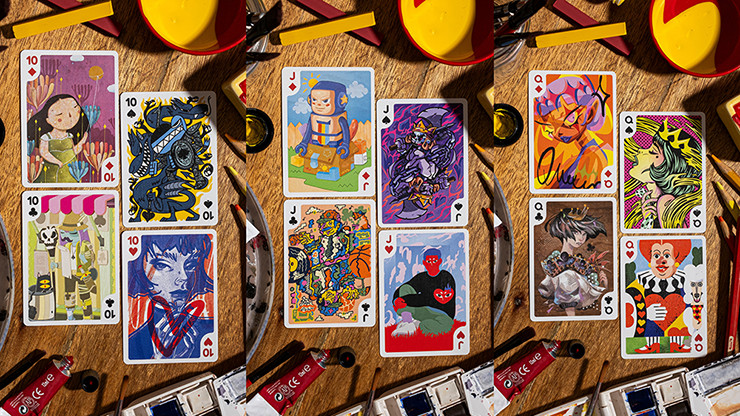 Eine Galerie, die in Ihre Hosentasche passt Bicycle Sari-Sari Colors Spielkarten sind eine mobile Ausstellung im Taschenformat, die ganzseitige Kartenkunstwerke von 55 philippinischen Künstlern aus aller Welt präsentiert. Jede Karte wird so zu einer persönlichen Leinwand, die in einem gemeinsamen Werk verschiedene Perspektiven, Geschichten und kreative Ausdrucksformen in einem einzigen Kartenspiel vereint.