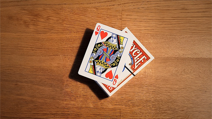 Der Zauberer schreibt eine Vorhersage auf und legt sie gut sichtbar für das Publikum aus. Ein Zuschauer nimmt ein frei gemischtes Kartenspiel (ja, frei!) und legt die Karten offen auf den Tisch, bis er sich entscheidet, eine Karte verdeckt zu ziehen. Diese Karte wird mit einem Gummiband am Kartenetui fixiert und bleibt gut sichtbar, geschützt vor Manipulationen durch das Band.