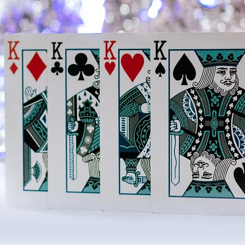 Die Butterfly Playing Cards Winter Edition – Markiert eignen sich für alle Zauberkünstler, Kartenspieler und Spielkartensammler. Das Deck spiegelt die wunderschöne Farbpalette des Winters wider und enthält speziell angefertigte Bildkarten, Asse und Joker sowie eine Karte mit doppelter Rückseite.
