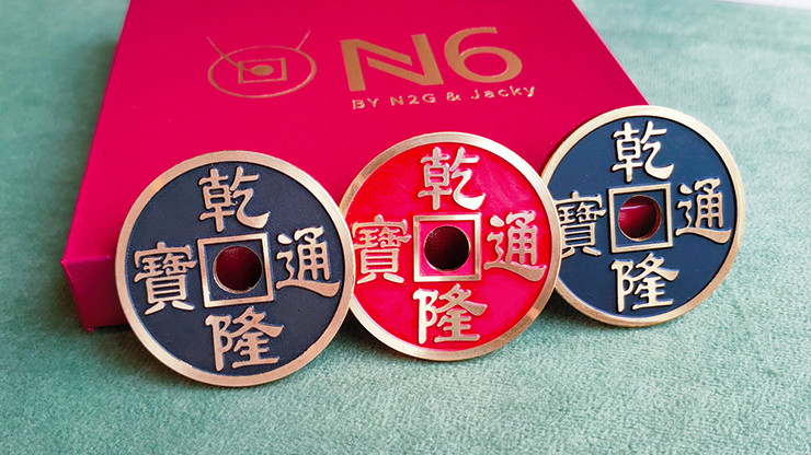 N6 besteht aus hochwertigen chinesischen Münzen. Das gesamte Set der Requisiten enthält eine N6 Gimmick-Münze, eine rote gewöhnliche chinesische Münze, eine schwarze gewöhnliche chinesische Münze, einen Plastikring und eine Schnur.