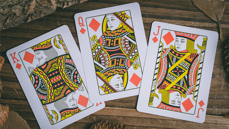 Die Kartenvorderseiten bestechen durch dezent verfeinerte Symbole und Zahlen, während die Hofkarten einen charmanten Vintage-Stil aufweisen. Die Kartenrückseite ziert ein üppiges Blätterwerk mit exquisiter Textur und Detailgenauigkeit. Diese Bildsprache ist nicht nur optisch ansprechend, sondern spiegelt auch auf wunderbare Weise das zentrale Thema der Veranstaltung wider : „Gemeinsam erblühen wir.“