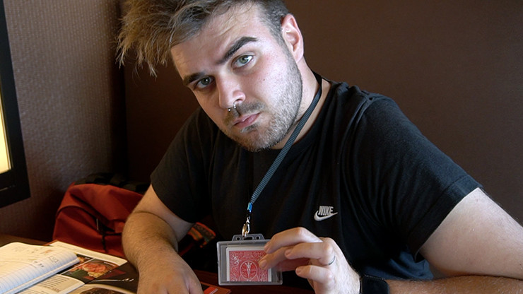 Hallpass ist ein raffiniertes Gerät von Julio Montoro und James Anthony, mit dem man auf saubere und unauffällige Weise signierte Karten und Vorhersagen aus einem Ausweishalter heraus erstellen kann.