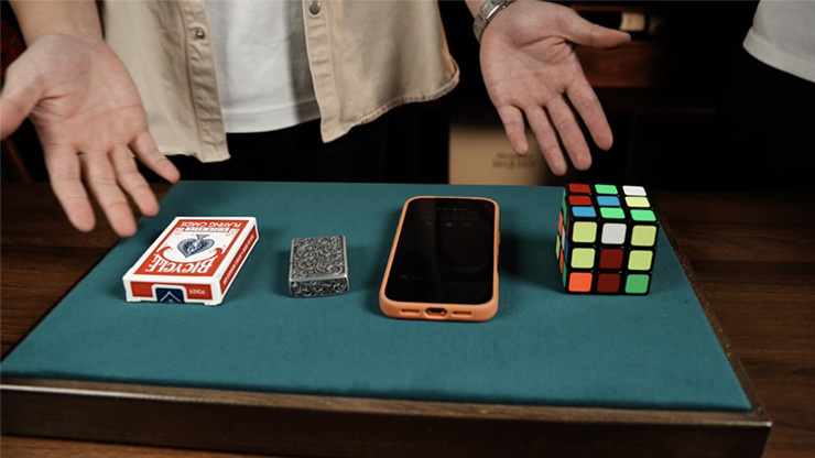 LIFT – Reiner Mentalismus Der Zauberer leiht sich vier zufällig ausgewählte Alltagsgegenstände aus dem Publikum – eine Geldbörse, ein Handy, AirPods oder einen anderen kleinen Gegenstand, den der Zuschauer bei sich trägt. Alle Gegenstände werden offen auf dem Close-up-Pad platziert.