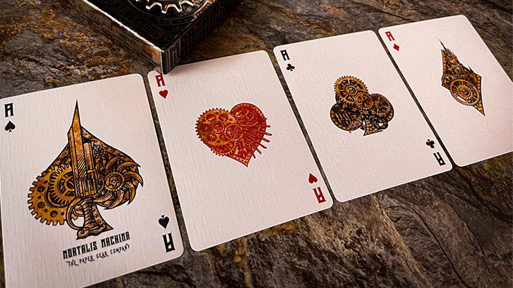 Das Standarddeck enthält die gleiche Schachtel, jedoch ohne Goldverzierung auf den Karten. Das Design der Karten und des Getriebes entwickelte sich parallel – mechanische Elemente wie Zahnräder sind subtil in das Kunstwerk integriert, um ein einheitliches Erlebnis zu schaffen.