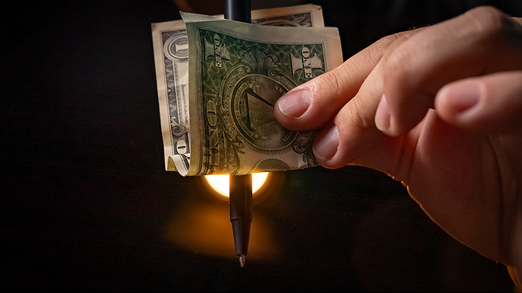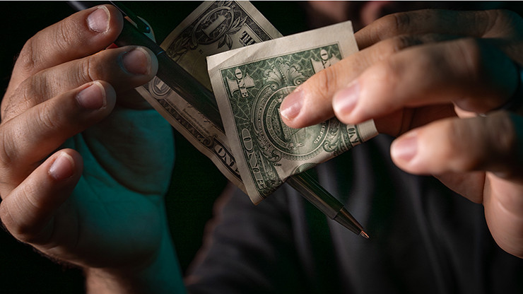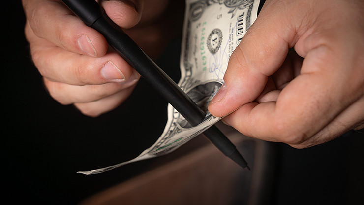Sie leihen sich von jemandem eine Banknote und schieben mit einer schnellen Bewegung optisch einen Stift hindurch.