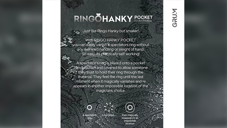 Mit Ringo Hanky Pocket können Sie den Ring eines Zuschauers ganz einfach verschwinden lassen, ohne umständliche Handhabung oder Taschenspielertricks. So einfach, es funktioniert praktisch von selbst!