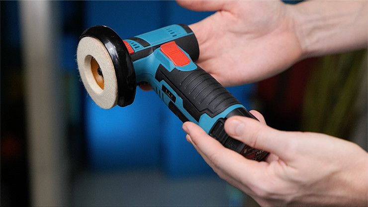 - Winkelschleifer mit Filzscheibe + Ladegerät