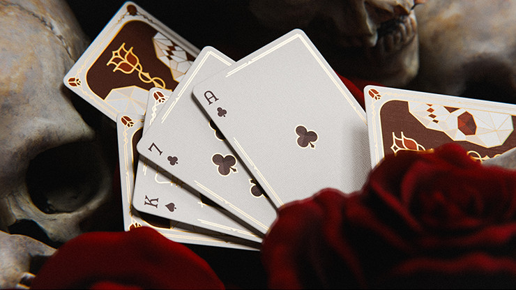 Skulls & Roses interpretiert den Tod als Transformation – als Übergang in die Ewigkeit. Totenköpfe verkörpern den Wandel, Rosen symbolisieren die zerbrechliche Trotzbarkeit des Lebens gegenüber der Zeit. Inspiriert von den Glasmalereien von Kathedralen des 17. Jahrhunderts und den prunkvollen Kartenspielen adliger Könige und Königinnen, schlägt dieses Design eine Brücke zwischen Geschichte und Kontemplation. Mehr als nur Karten, ist es eine sinnliche Meditation über den heiligen Tanz des Lebens mit der Vergänglichkeit. Jedes Stück flüstert von Schönheit, Sterblichkeit und einer Bedeutung jenseits des Materiellen.