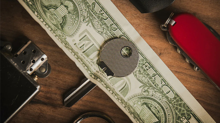 Gibt es einen besseren Zaubertrick, als den Zuschauer die Illusion vorführen zu lassen? Sie geben dem Zuschauer den Schlüssel und den geliehenen Geldschein in die Hand, und der Zuschauer greift nach dem Schlüssel. Dann zieht eine unsichtbare Kraft den Geldschein zusammen.